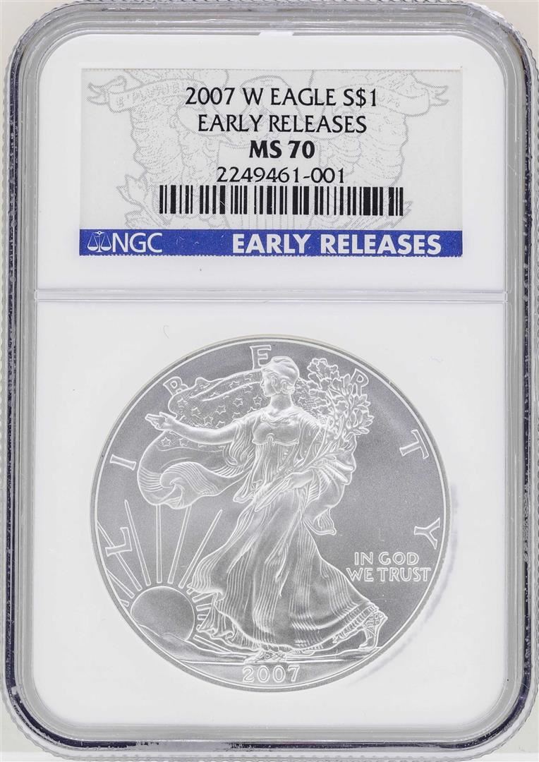 One 2007-W $1 American Silver Eagle Coin NGC MS70 Early Releases. NGC Certified.
