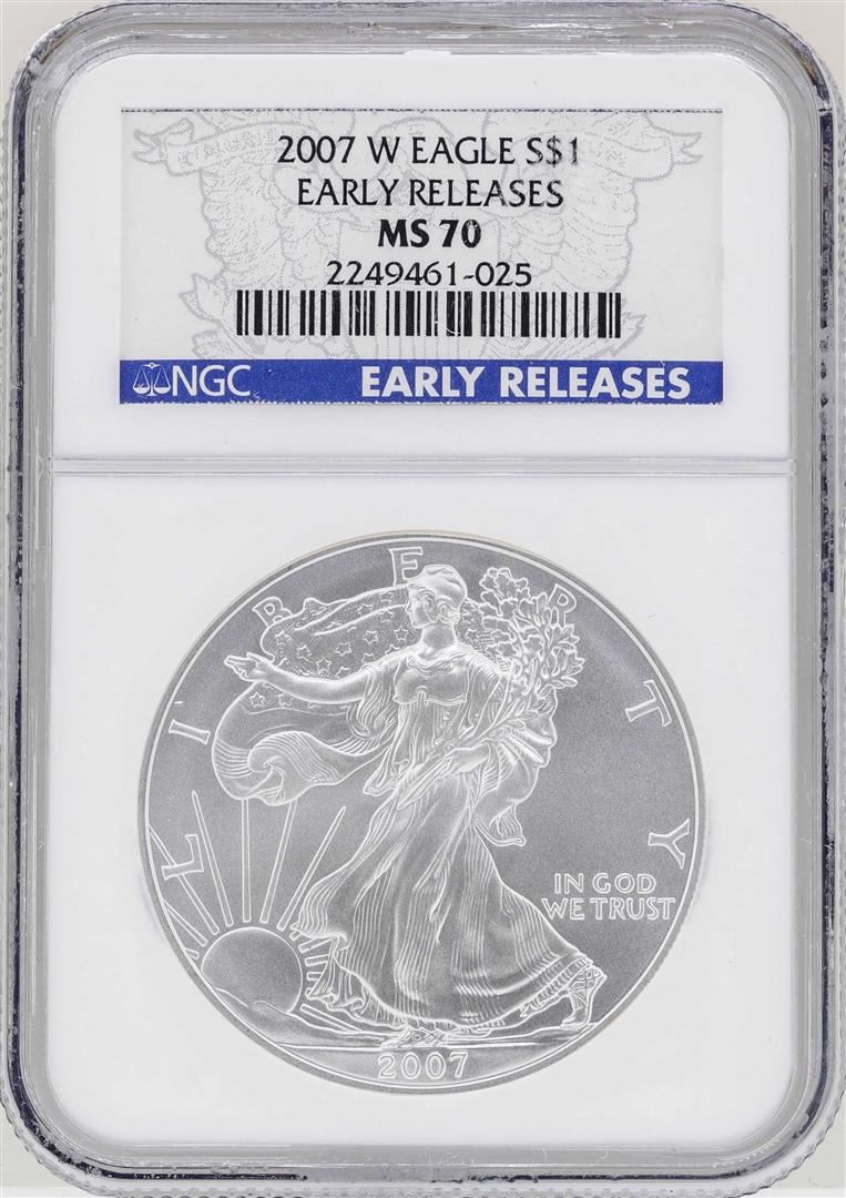 One 2007-W $1 American Silver Eagle Coin NGC MS70 Early Releases. NGC Certified.