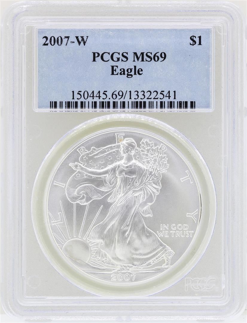 One 2007-W $1 American Silver Eagle Coin PCGS MS69. PCGS Graded.