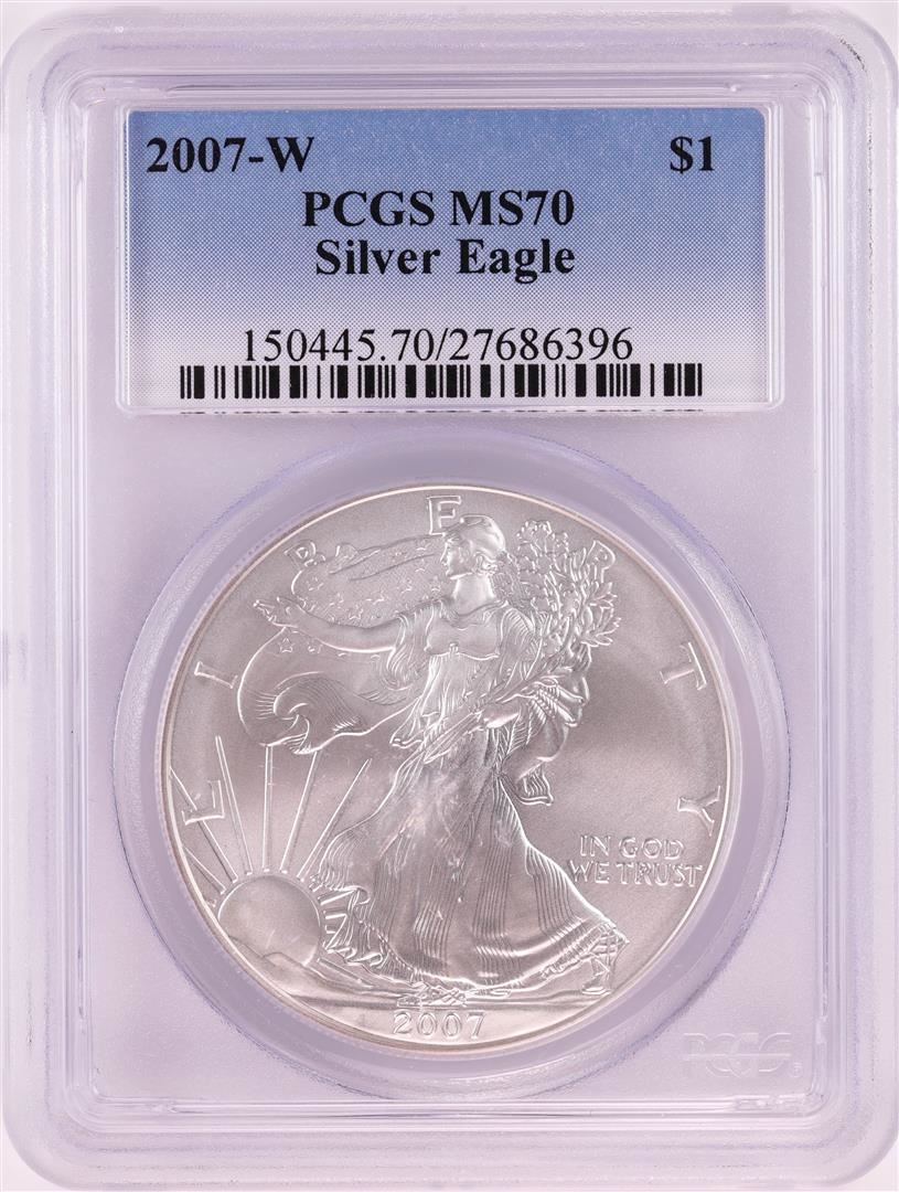 One 2007-W $1 American Silver Eagle Coin PCGS MS70. PCGS Graded.