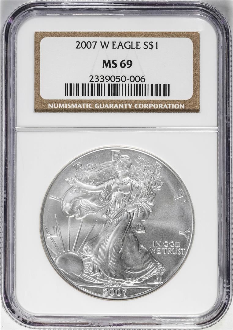 One 2007-W $1 Burnished American Silver Eagle Coin NGC MS69. NGC Certified.