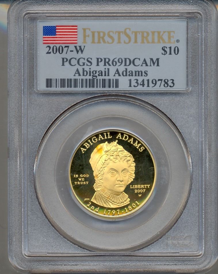 One 2007-W $10 Abigail Adams Gold Coin PCGS PR69DCAM.