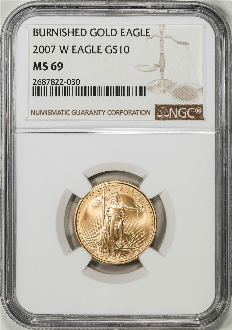 One 2007-W $10 Burnished American Gold Eagle Coin NGC MS69. NGC Certified.