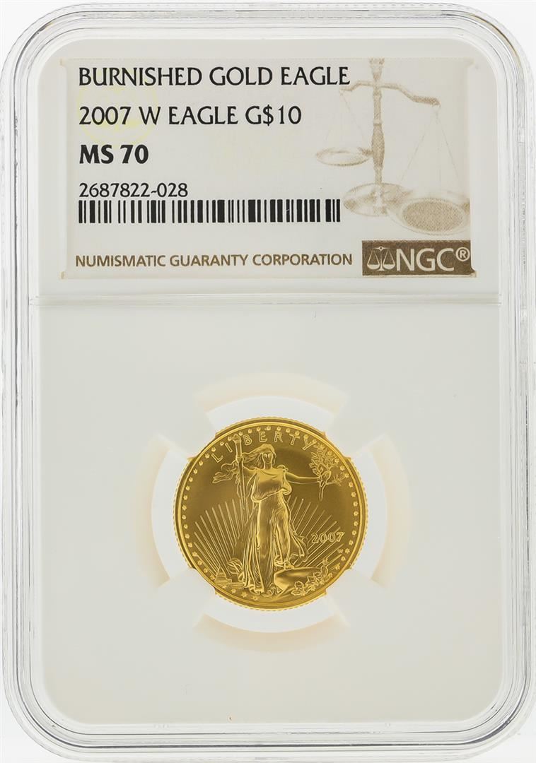 One 2007-W $10 Burnished American Gold Eagle Coin NGC MS70. NGC Certified.