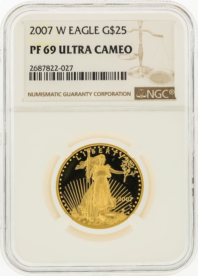One 2007-W $25 American Gold Eagle Coin NGC PF69 Ultra Cameo. NGC Certified.