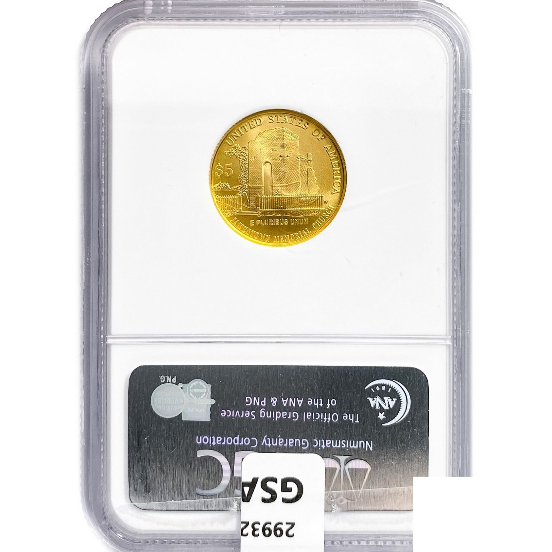 2007-W $5 8.36g Jamestown Gold NGC MS70
