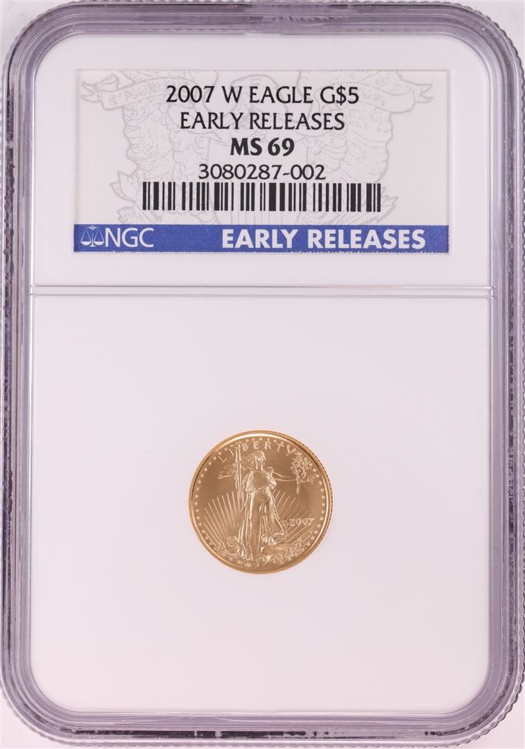 One 2007-W $5 American Gold Eagle Coin NGC MS69 Early Releases. NGC Certified.