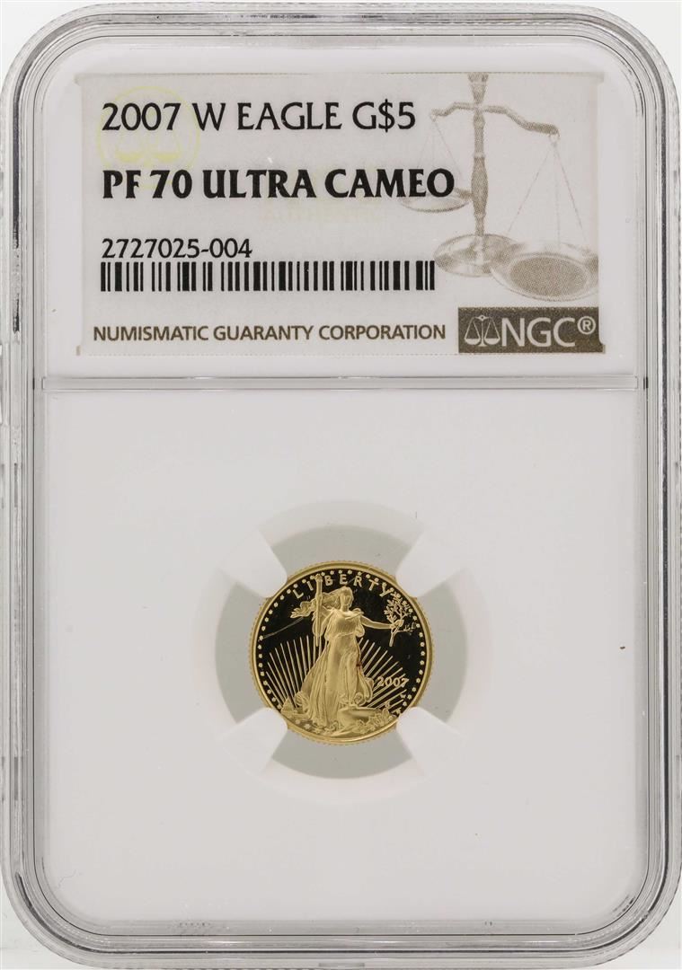 One 2007-W $5 American Gold Eagle Proof Coin NGC PF70 Ultra Cameo . NGC Certified.
