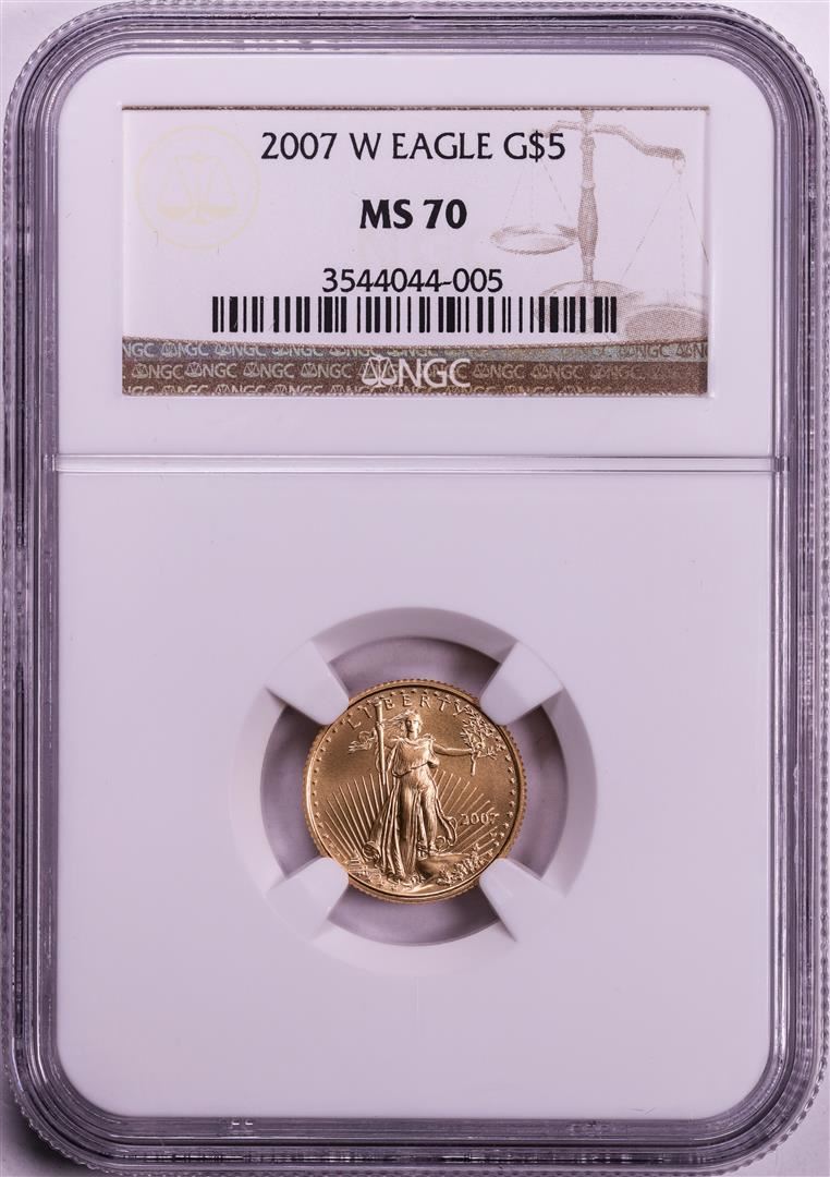 One 2007-W $5 Burnished American Gold Eagle Coin NGC MS70. NGC Certified.