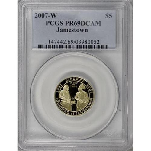 <B>2007-W $5 Jamestown PR69 Deep Cameo PCGS.</B></I> PCGS Population (940/172). NGC Census: (0/0). Numismedia Wsl. Price for NGC/PCGS coin in PR69: $255. (#147442)<BR><BR><b>Shipping:</b> Coins & Currency (<a target="_blank" href="http://www.heritageauctions.com/common/shipping.php">view shipping information</a>)