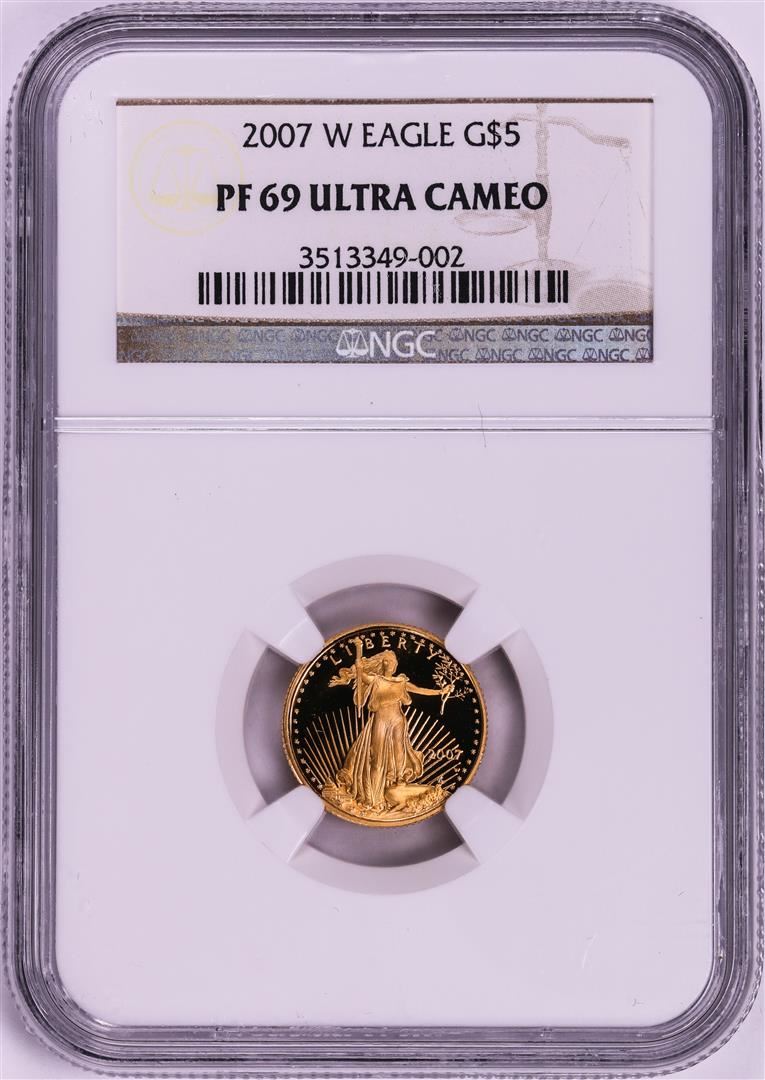 One 2007-W $5 Proof American Gold Eagle Coin NGC PF69 Ultra Cameo. NGC Certified.
