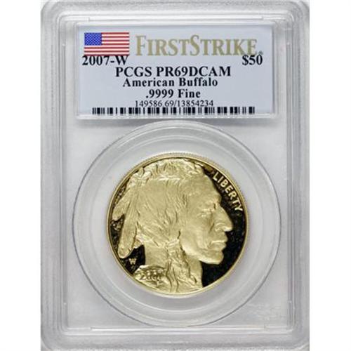 <B>2007-W $50 Buffalo PR69 Deep Cameo PCGS.</B></I> First Strike. PCGS Population (1840/400). NGC Census: (0/0). (#149586)<BR><BR><b>Shipping:</b> Coins & Currency (<a target="_blank" href="http://www.heritageauctions.com/common/shipping.php">view shipping information</a>)
