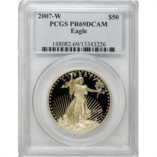 <B>2007-W $50 One-Ounce American Gold Eagle PR69 Deep Cameo PCGS.</B></I> . PCGS Population (526/79). NGC Census: (0/0). (#148082)<BR><BR><b>Shipping:</b> Coins & Currency (<a target="_blank" href="http://www.heritageauctions.com/common/shipping.php">view shipping information</a>)