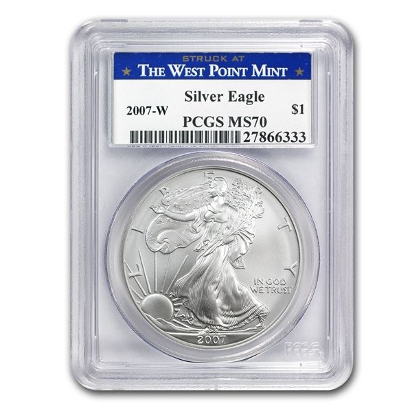 2007-W (Burnished) Silver American Eagle MS-70 PCGS - W **|**|** 2007-W (Burnished) Silver American Eagle MS-70 PCGS - West Point ; MSRP: $200