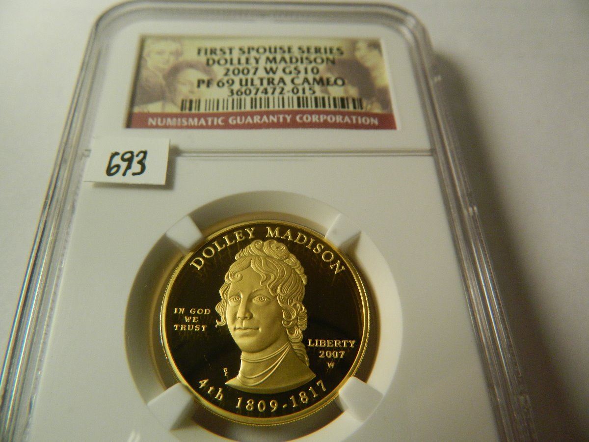 2007-W GOLD U.S. $10 Dolley Madison, NGC PF69UCAM, 1/2 Ounce Fine Gold