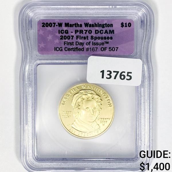 2007-W Martha Washington Gold $10 ICG-PR70 DCAM