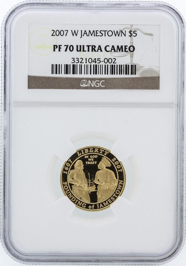 One 2007-W NGC Graded Ultra Cameo PF70 Jamestown $5 Commemorative Gold Coin. NGC Certified.