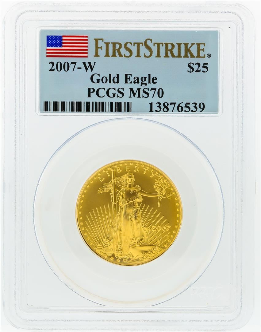 One 2007-W PCGS MS70 First Strike $25 Eagle 1/2 Oz. Gold Coin. PCGS Certified.