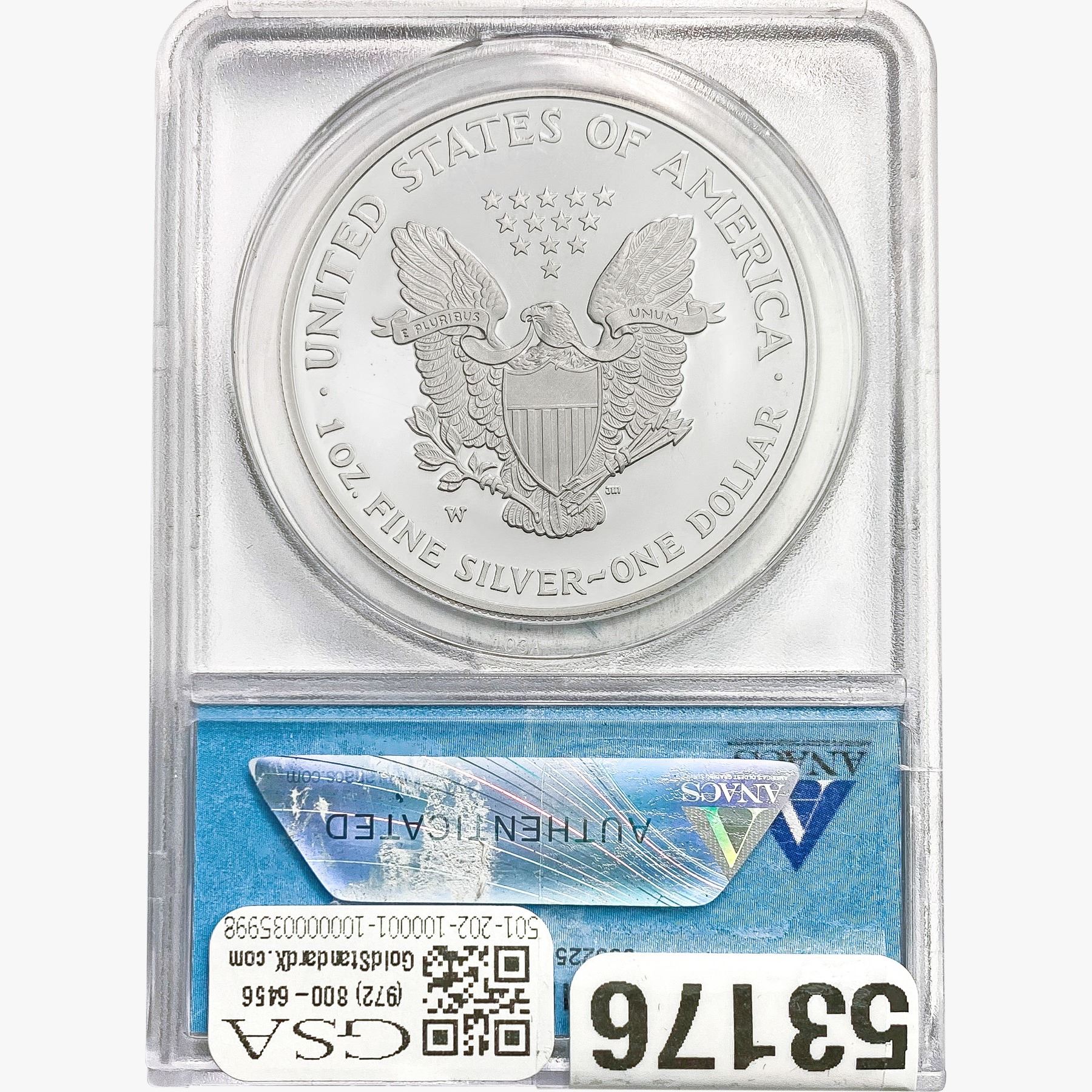 e. Coins sold referencing a third-party grading service are sold “AS IS” without any express or implied warranty, except for a guarantee by GSA that they are genuine. Removal or alteration of the holder, voids all of Bidder’s claims concerning that Product. Certain warranties may be available from the grading services and Bidders are referred to them for further details: Numismatic Guaranty Corporation (NGC), PO Box 4776, Sarasota, FL 34230, www.ngccoin.com/services/writtenguarantee.asp; Professional Coin Grading Services (PCGS), PO Box 9458, Newport Beach, CA 92658, www.pcgs.com/guarantee.html; ANACS, 6555 S. Kenton St., Ste. 303, Englewood, CO 80111; and Independent Coin Grading Co. (ICG), 7901 East Bellview, Ave., Suite 50, Englewood, CO 80111.