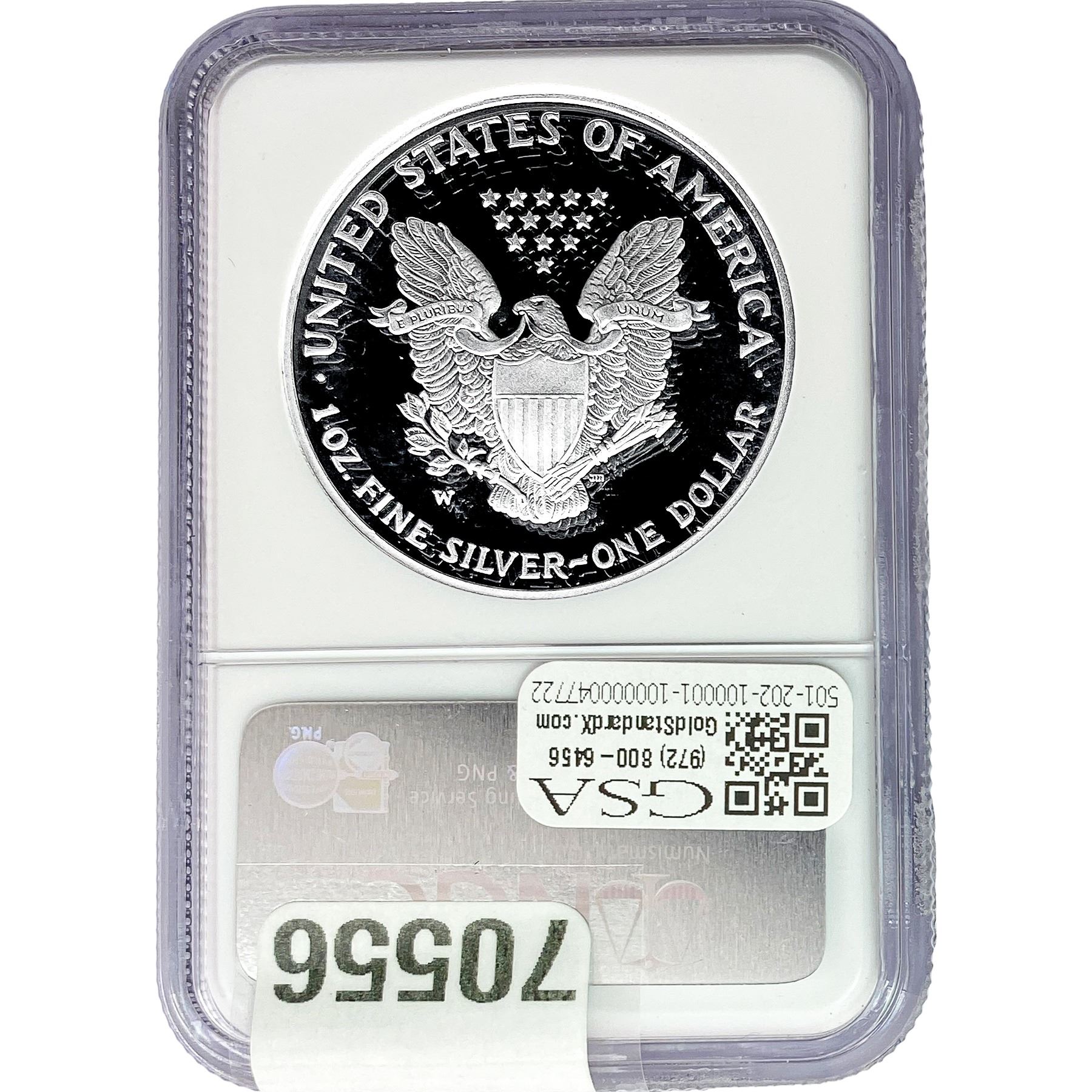 e. Coins sold referencing a third-party grading service are sold “AS IS” without any express or implied warranty, except for a guarantee by GSA that they are genuine. Removal or alteration of the holder, voids all of Bidder’s claims concerning that Product. Certain warranties may be available from the grading services and Bidders are referred to them for further details: Numismatic Guaranty Corporation (NGC), PO Box 4776, Sarasota, FL 34230, www.ngccoin.com/services/writtenguarantee.asp; Professional Coin Grading Services (PCGS), PO Box 9458, Newport Beach, CA 92658, www.pcgs.com/guarantee.html; ANACS, 6555 S. Kenton St., Ste. 303, Englewood, CO 80111; and Independent Coin Grading Co. (ICG), 7901 East Bellview, Ave., Suite 50, Englewood, CO 80111.