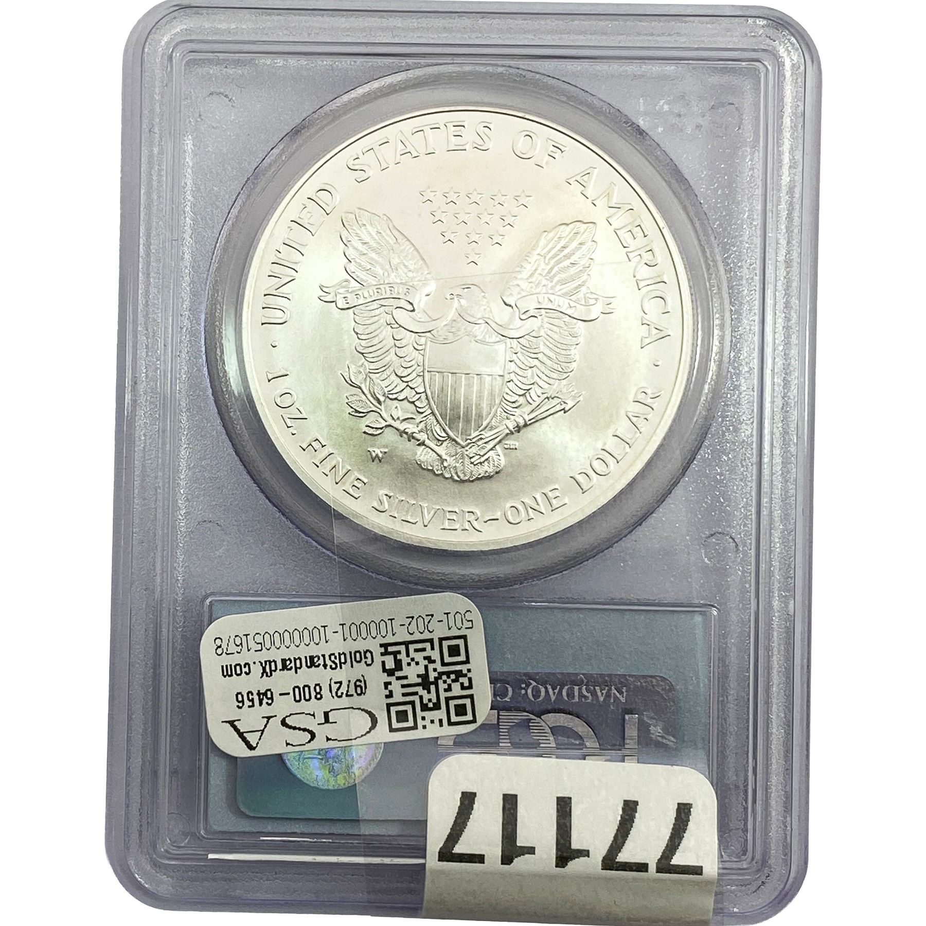 e. Coins sold referencing a third-party grading service are sold “AS IS” without any express or implied warranty, except for a guarantee by GSA that they are genuine. Removal or alteration of the holder, voids all of Bidder’s claims concerning that Product. Certain warranties may be available from the grading services and Bidders are referred to them for further details: Numismatic Guaranty Corporation (NGC), PO Box 4776, Sarasota, FL 34230, www.ngccoin.com/services/writtenguarantee.asp; Professional Coin Grading Services (PCGS), PO Box 9458, Newport Beach, CA 92658, www.pcgs.com/guarantee.html; ANACS, 6555 S. Kenton St., Ste. 303, Englewood, CO 80111; and Independent Coin Grading Co. (ICG), 7901 East Bellview, Ave., Suite 50, Englewood, CO 80111.
