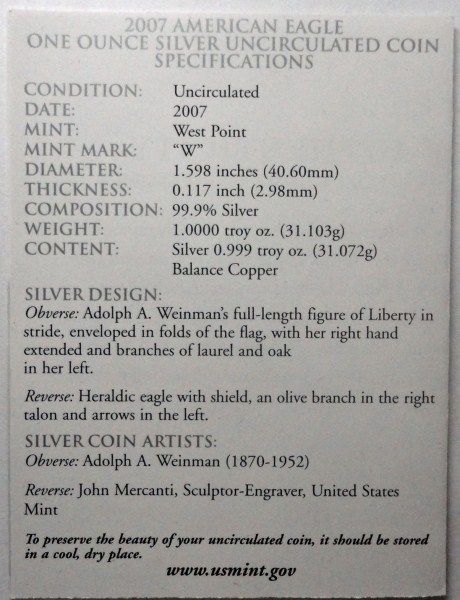 SPECIAL EDITION UNCIRCULATED BURNISHED COIN WITH "W" MINT MARK, EST. $45.00 TO $50.00