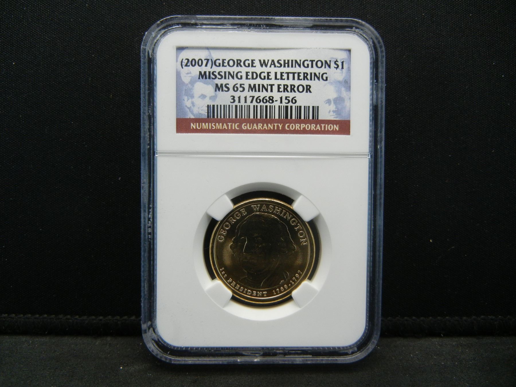 2007 Washington Dollar Error Coin NGC MS65 Missing Edge Lettering With Nice Display Box