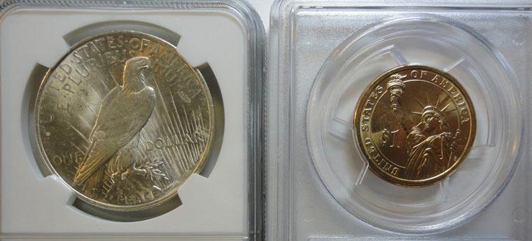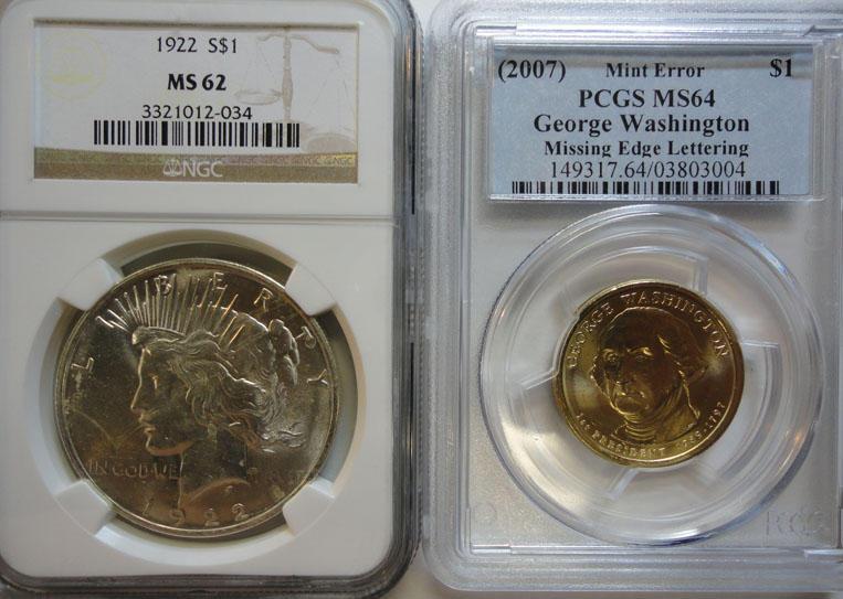 also missing edge lettering PCGS64. Also NGC62 1922 Peace $