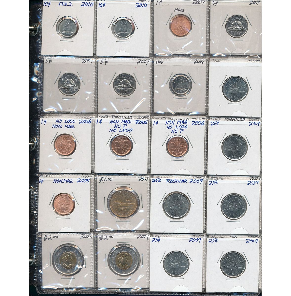 2007 to 2010 Coinage Lot; includes $204 Face of miscellaneous denominations Circ To UNC, all in 2x2's.