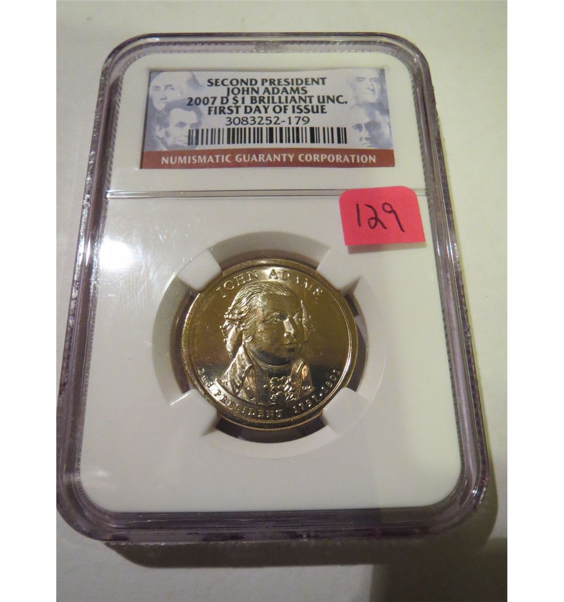 2007D John Adams Presidential Dollar NGC BU First Day of Issue