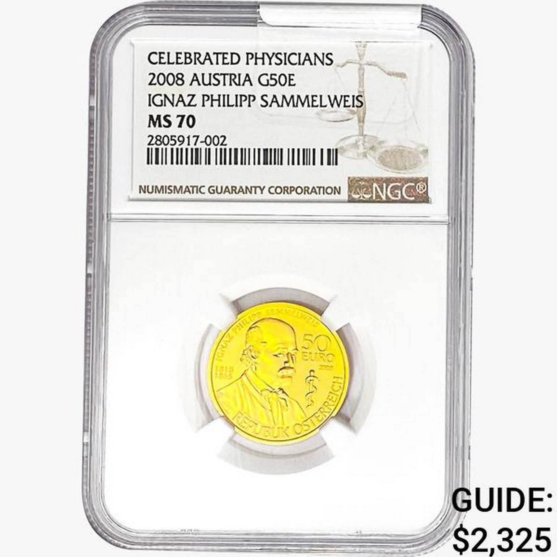 2008 0.358oz AUST G50 Euro-Semmelweis NGC MS70