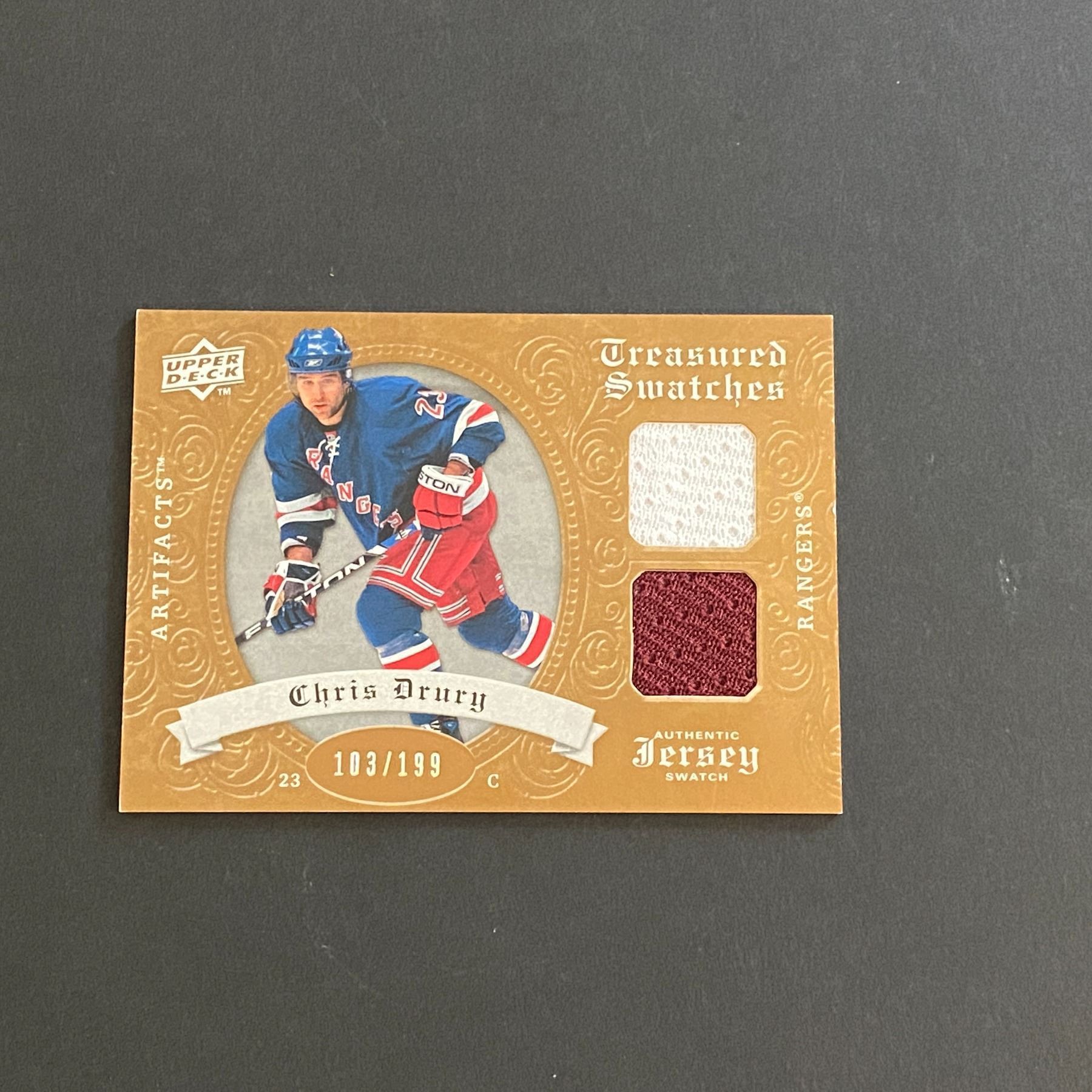 2008-09 ARTIFACTS HOCKEY CHRIS DRURY DUAL JERSEY CARD ONLY 199 MADE #103/199
