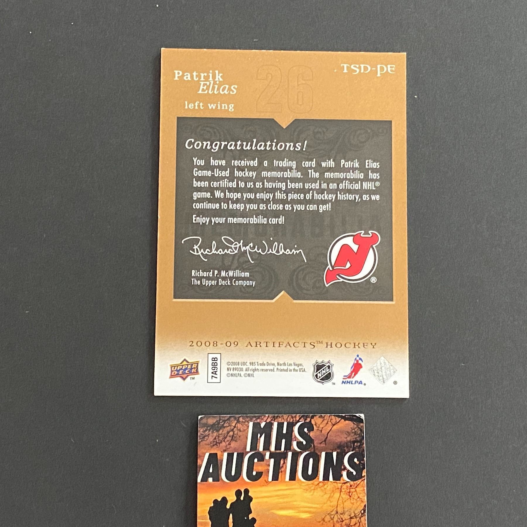 2008-09 ARTIFACTS PATRIK ELIAS DUAL JERSEY CARD #018/199 ONLY 199 MADE