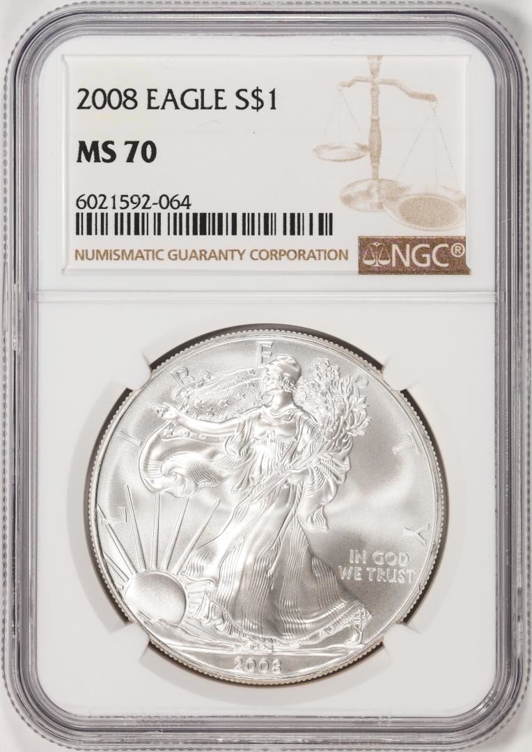 One 2008 $1 American Silver Eagle Coin NGC MS70. NGC Certified.