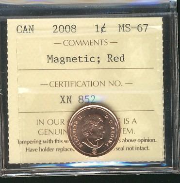 2008 1¢ Magnetic ICCS MS67RD.