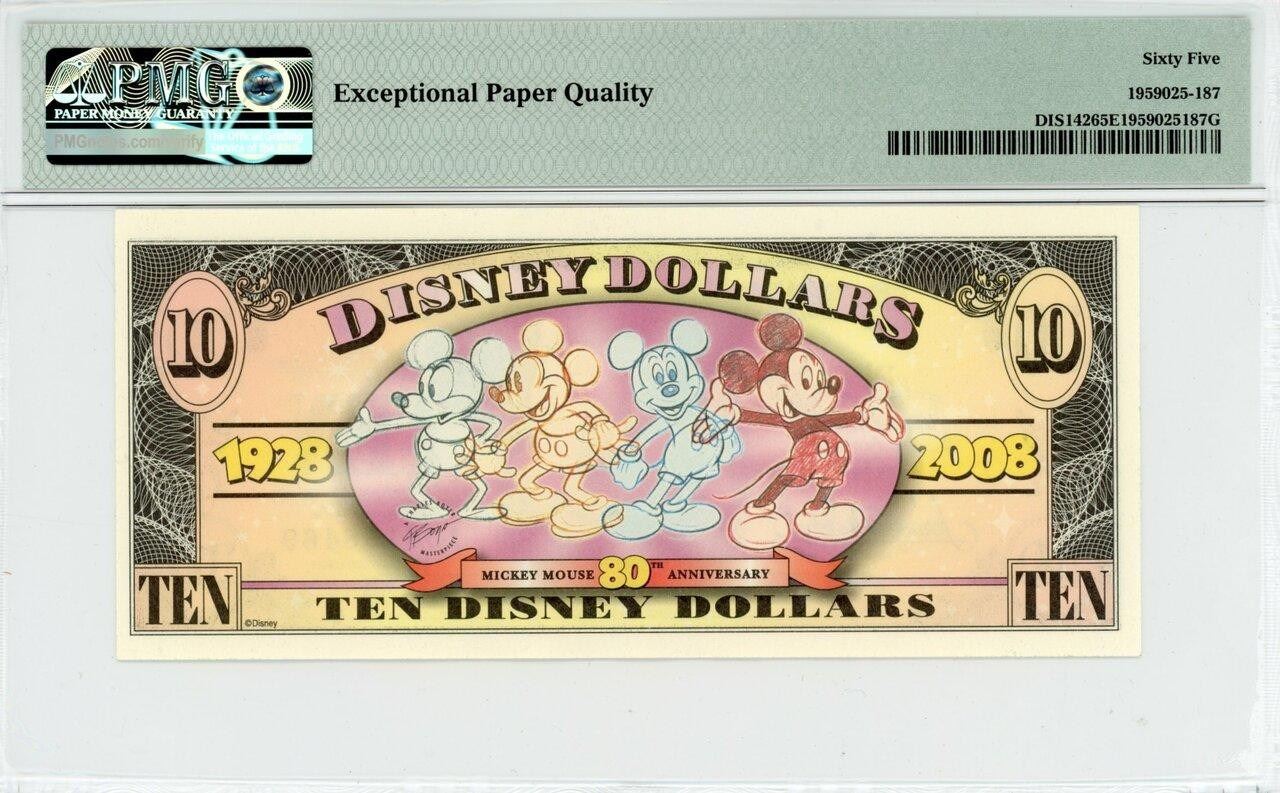 One 2008 $1 Mickey 80th Anniversary Disney Dollar PMG 65EPQ.