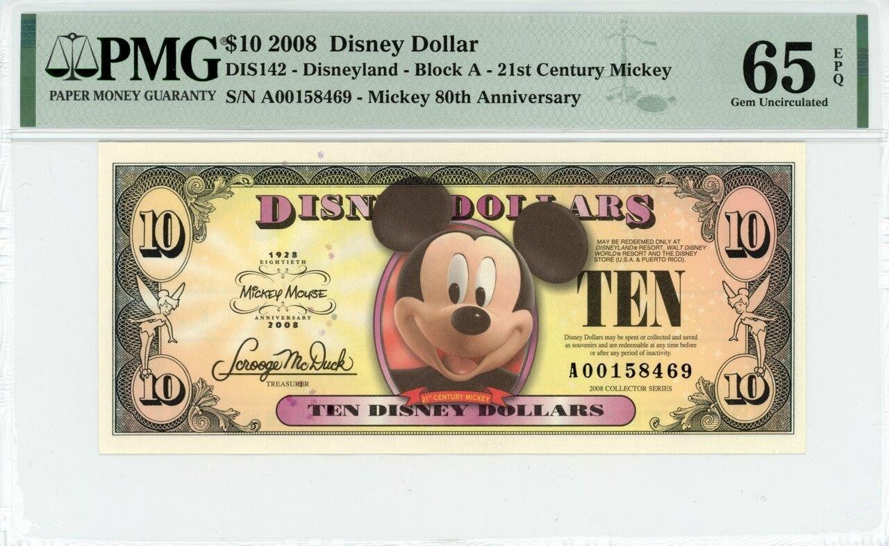 One 2008 $1 Mickey 80th Anniversary Disney Dollar PMG 65EPQ.