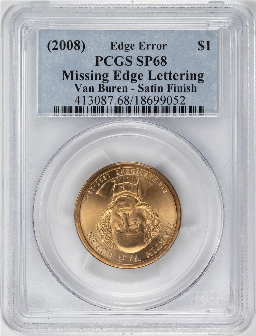 One 2008 $1 Van Buren Presidential Coin Missing Edge Lettering Error PCGS SP68. PCGS Graded.
