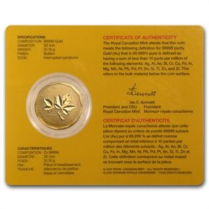 2008 1 oz Gold Canadian Maple Leaf .99999 Fine (W/Assay **|**|** Year: 2008 ; Mint Mark: Brilliant Uncirculated ; Grade: N/A ; Denomination: 200 ; MSRP: $2700