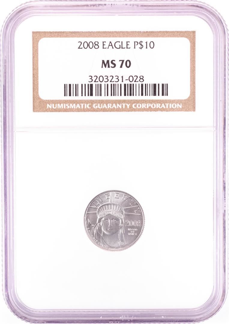 One 2008 $10 American Platinum Eagle Coin NGC MS70. NGC Certified.