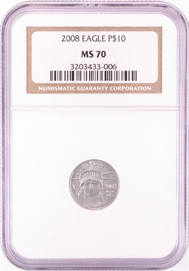 One 2008 $10 American Platinum Eagle Coin NGC MS70. NGC Certified.