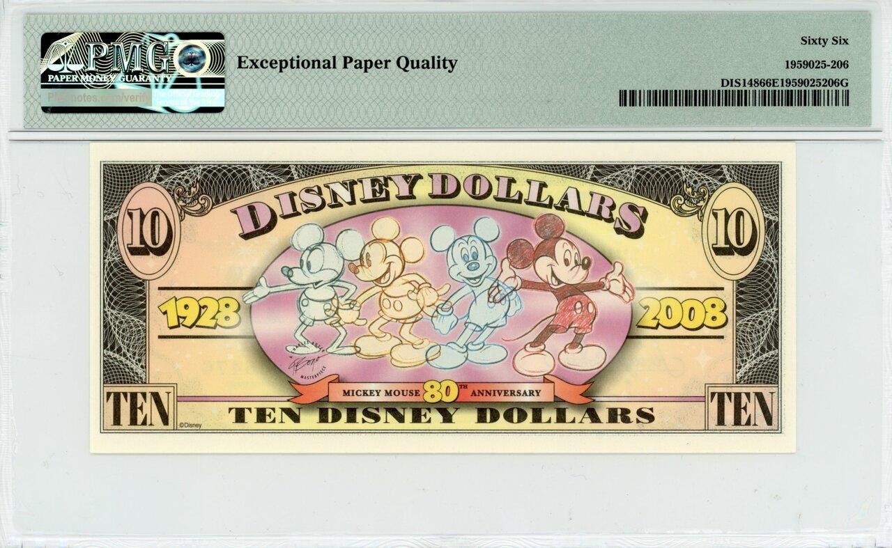 2008 $10 Mickey 80th Anniversary Disney Dollar PMG 66EPQ