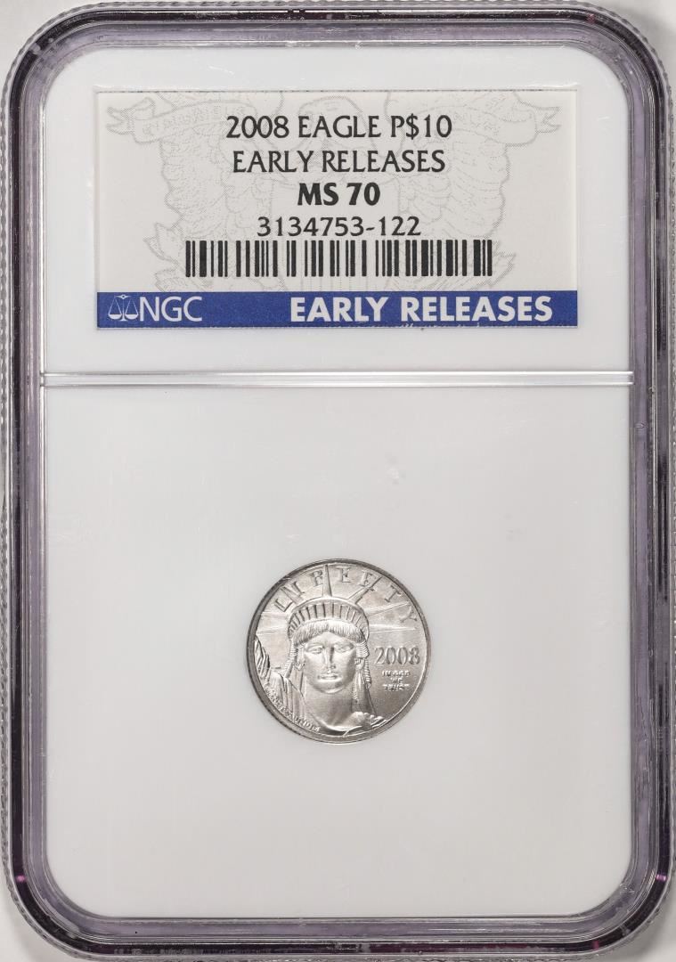 One 2008 $10 Platinum American Eagle Coin NGC MS70 Early Releases. NGC Certified.