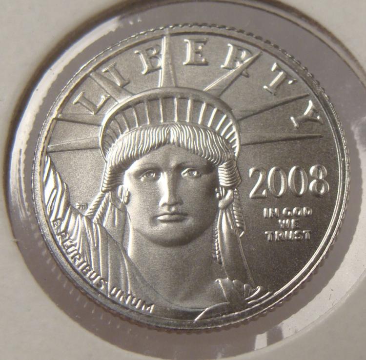 2008 $10 Platinum Liberty Coin * Content: 1/10 Oz. pure PlatinumDiameter: 16.5 mm