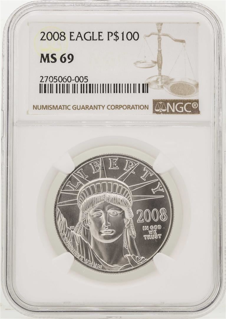 One 2008 $100 American Eagle Platinum Coin NGC MS69. NGC Certified.