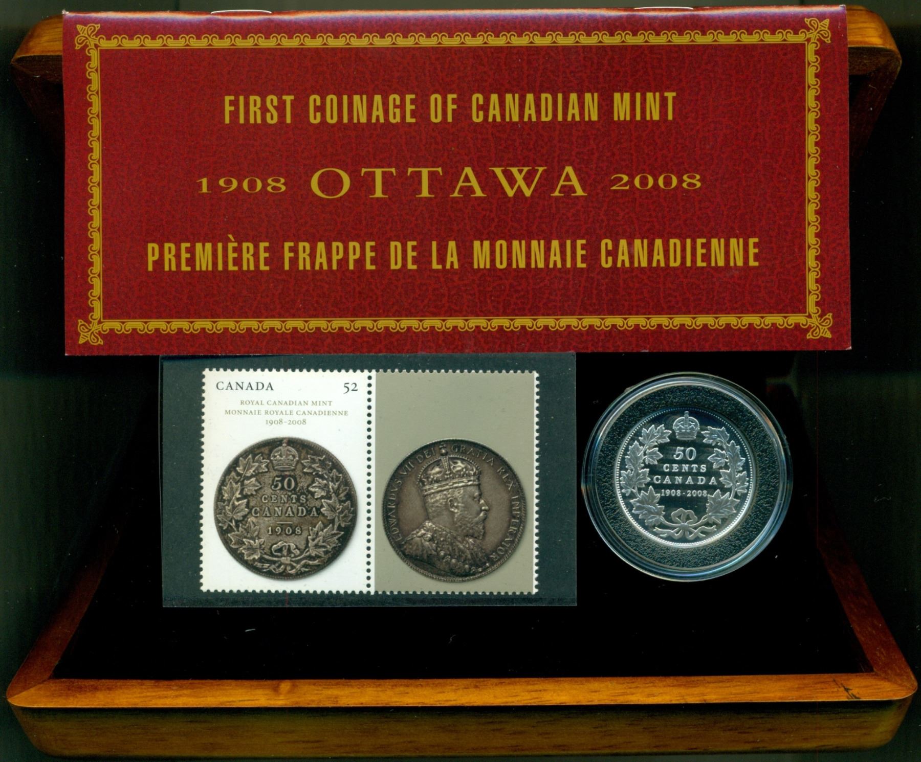 2008 100th Ann. Of The Royal Canadian Mint 50c Coin And Stamp Set
