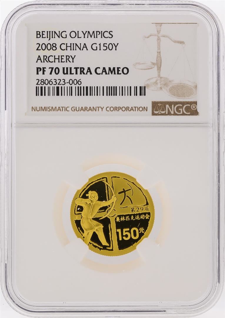 2008 150 Yuan Beijing China Olympics Gold Coin NGC PF70 Ultra Cameo