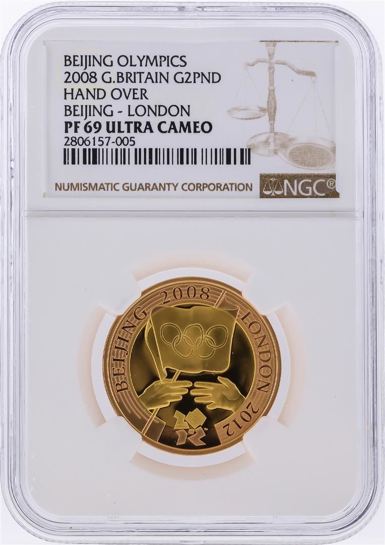 2008 2 Pound Great Britain Olympic Gold Coin NGC PF69 Ultra Cameo