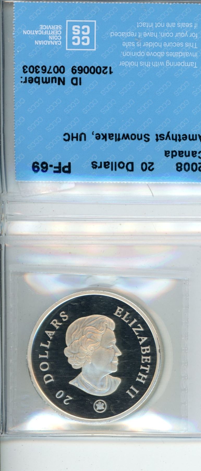 2008 $20 Canadian Dollar PF-69 Amythyst Snowflake CCCS Graded
