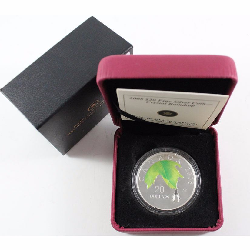 2008 $20 Crystal Raindrop Silver Coin. Please note there are light scratches on the coin capsule. (Tax Exempt)